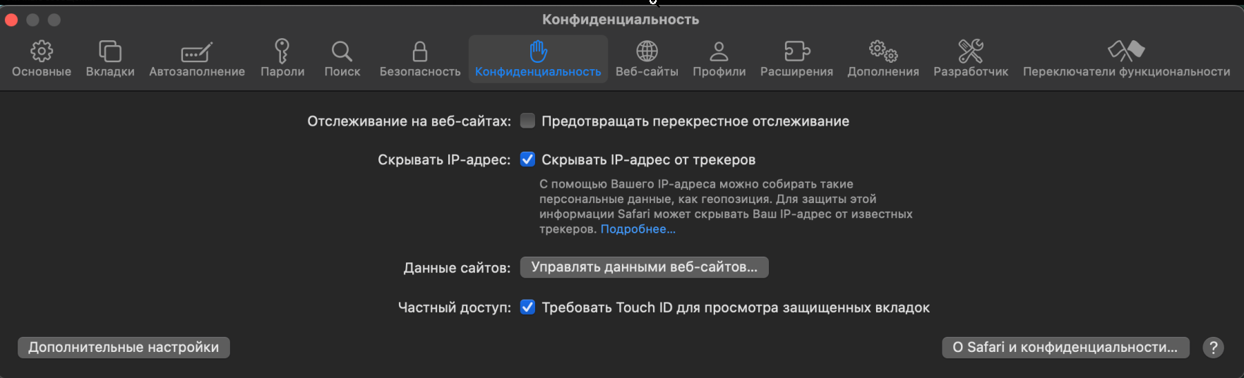 2. Отключите функцию «Предотвращать перекрестное отслеживание».