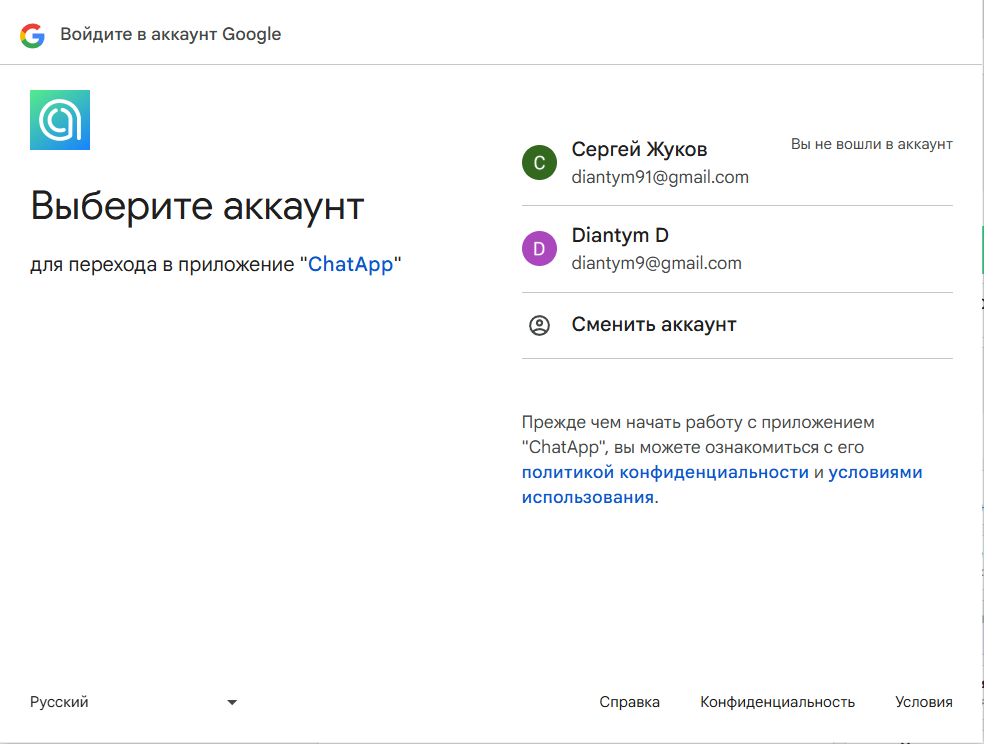 Вы в любой момент можете отключить Google Account от ChatApp нажатием на значок