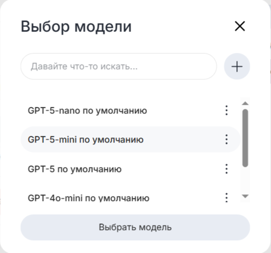 По умолчанию это будет GPT5-mini, рекомендуем оставлять её.