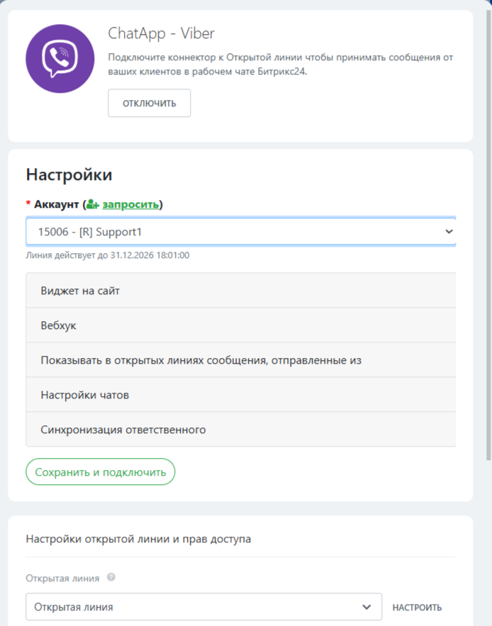 Убедитесь, что в Личном кабинете ChatApp подключен канал Viber bot, а в Битрикс24 установлен виджет ChatApp.