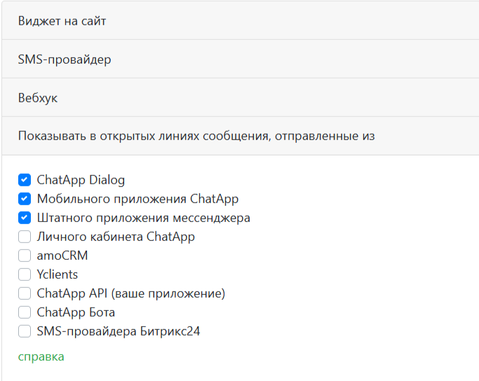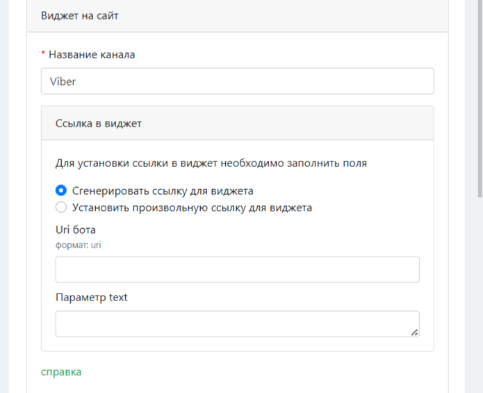 - Виджет на сайт — удобное для вас название канала и ссылка на виджет на вашем сайте для быстрой коммуникации клиентов с вами.