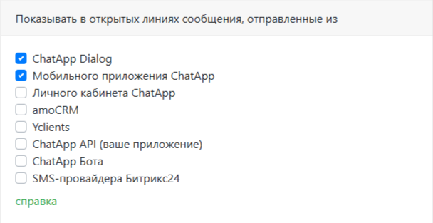 - Показывать в открытых линиях сообщения, отправленные из