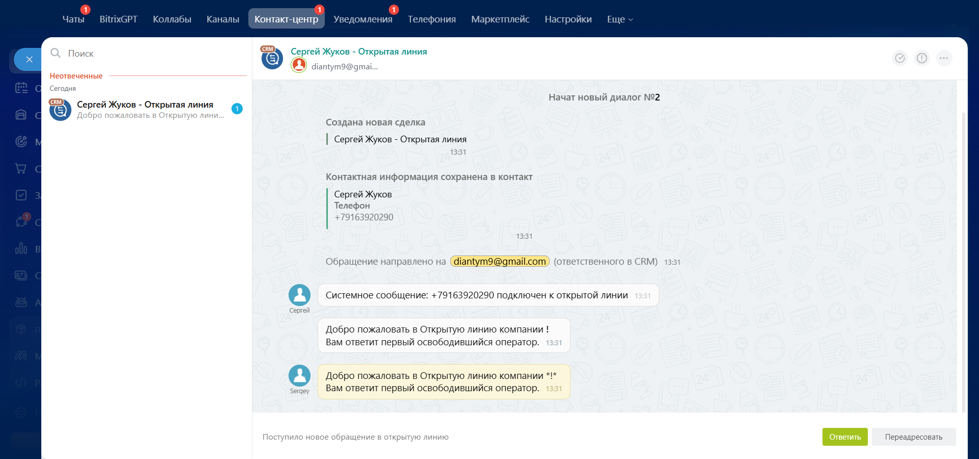 При наличии интеграций других мессенджеров, нужно установить интеграцию с Битрикс24.