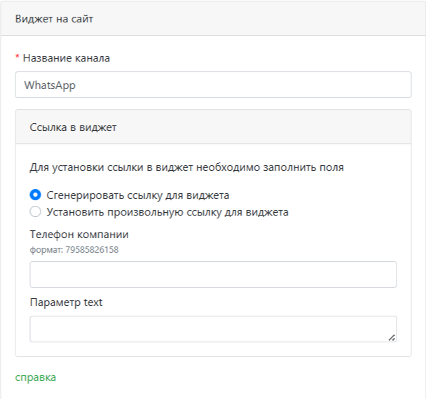 - Виджет на сайт — удобное для вас название канала и ссылка на виджет на вашем сайте для быстрой