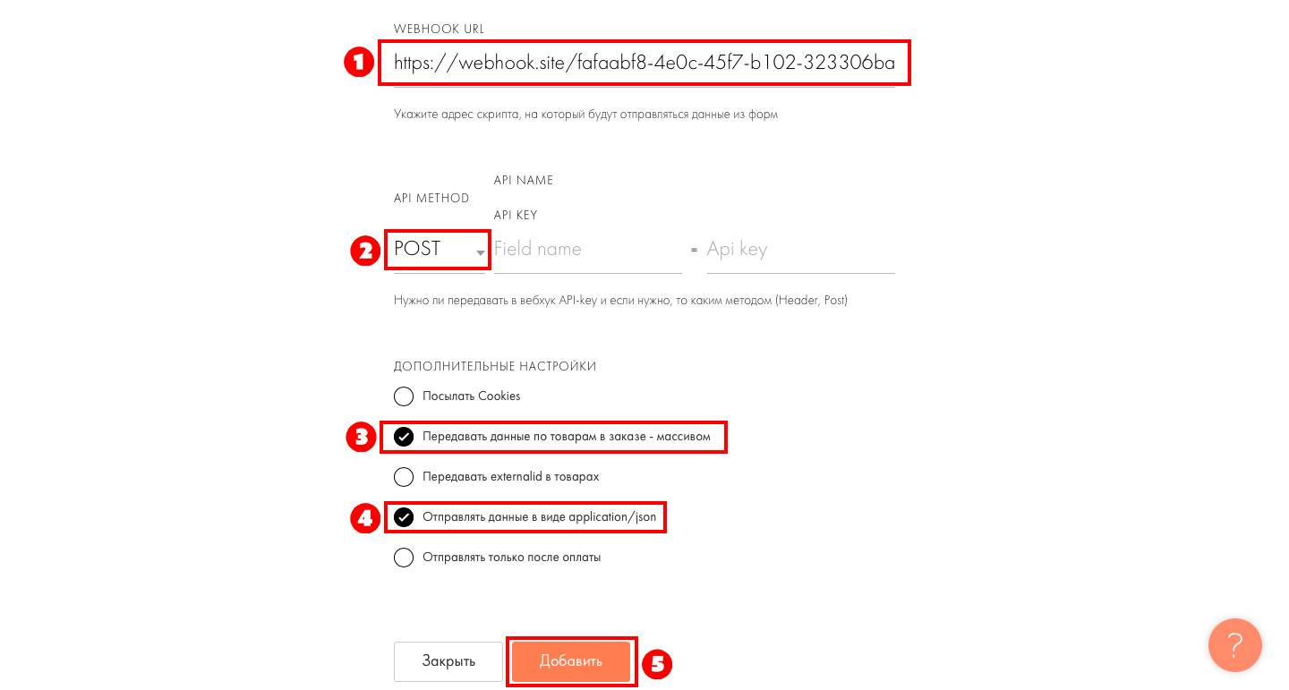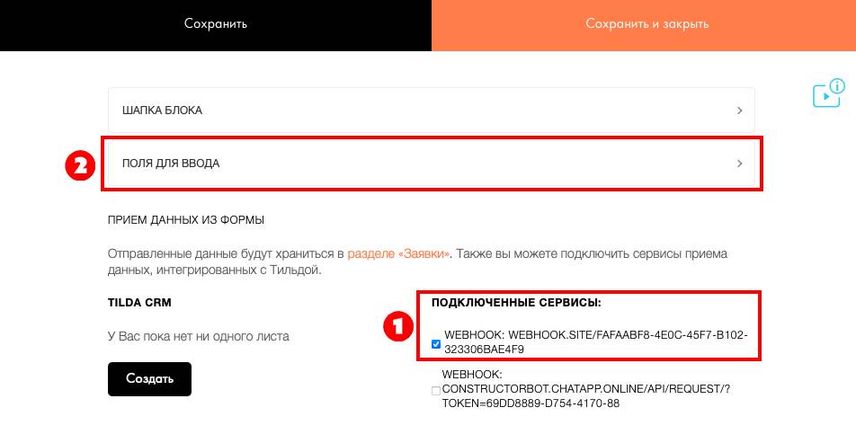 Добавить WebHook в Tilda
