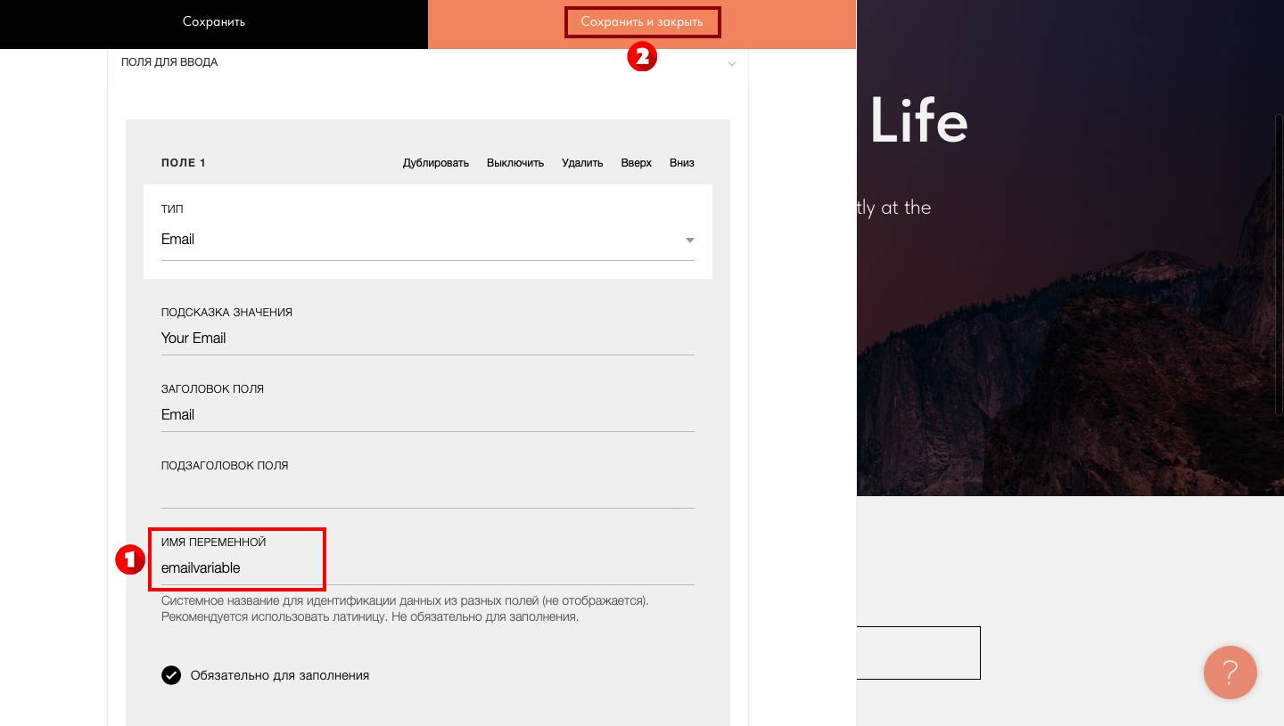 5. Задайте имя переменной для каждого поля. Нажмите «Сохранить и закрыть»;