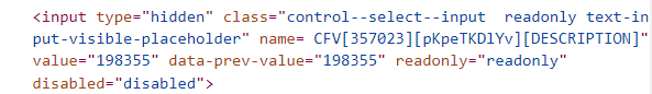 3. В окне отобразится код поля. Id находится в квадратных скобках после «CFV».