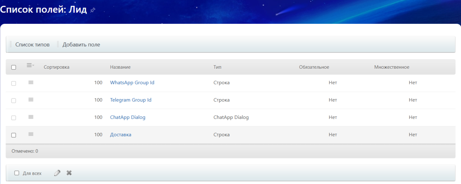 | Важно: для пользовательских полей поддерживаются только строковые не множественные поля. | |