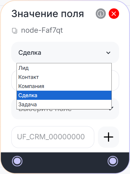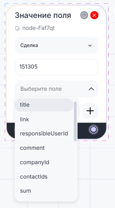 Блок может получить значение поля из CRM-систем:
