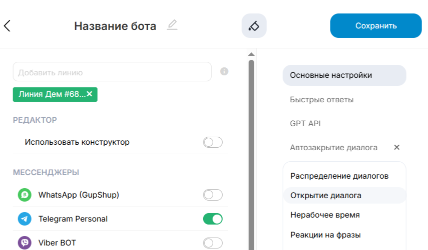 2. В меню слева перейдите в раздел «Боты».