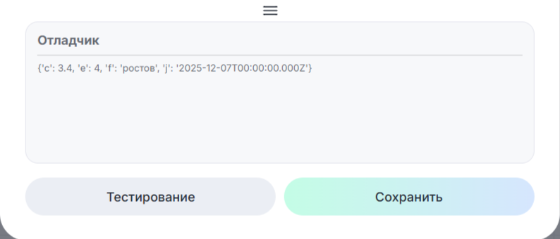 5. Нажмите «Тестирование», чтобы проверить выполнение кода. Результат отобразится в поле «Отладчик».
