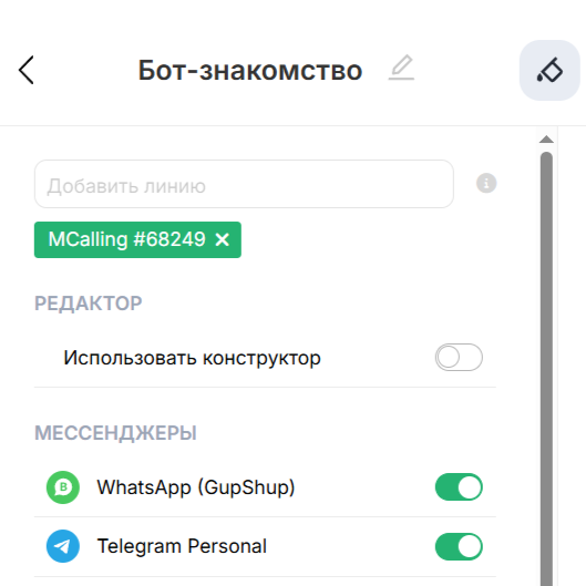 3. В поле «Линия» выберите ту, на которой будет работать бот.