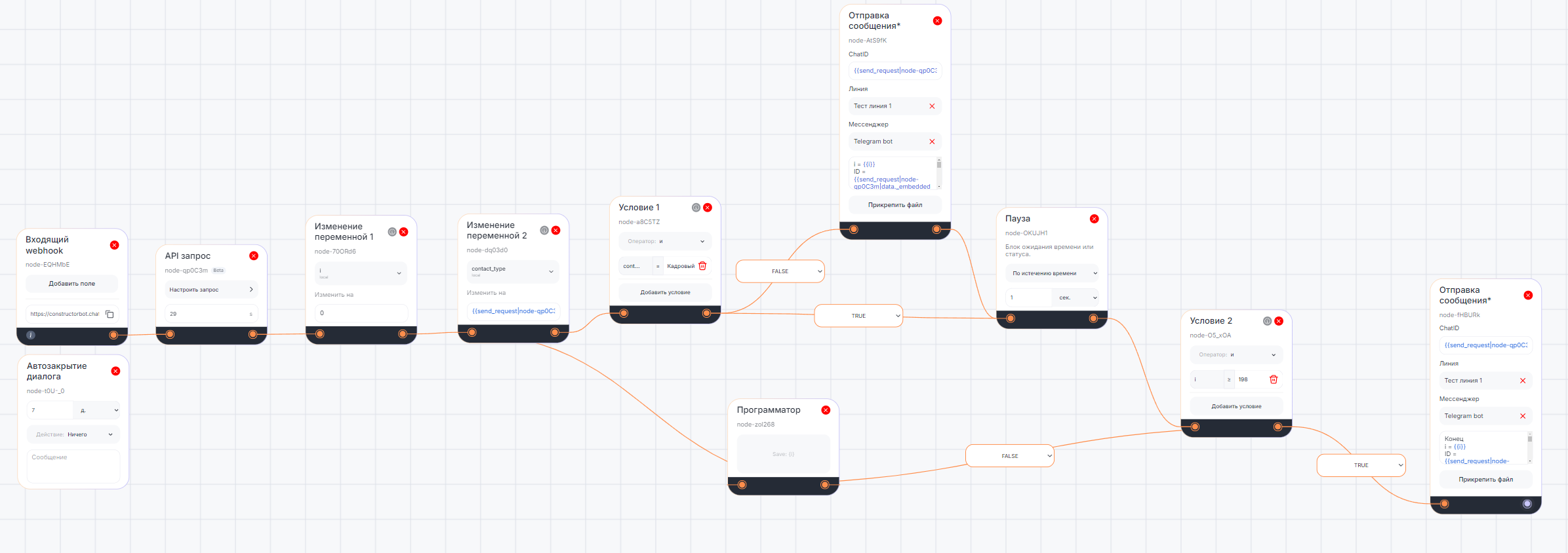 - Если false, подключите к блоку Отправка сообщения 1.