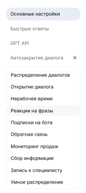 2. В выпадающем списке выберите вариант «Реакции на фразы».