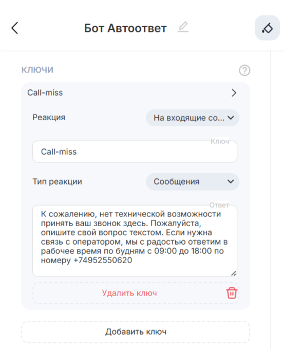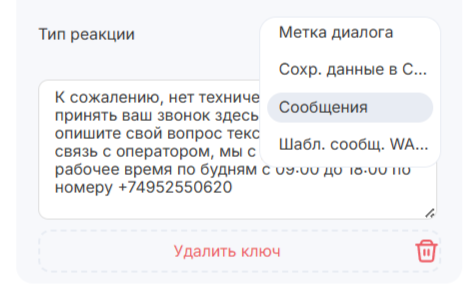 Реакция на сообщения в Готовых ответах Конструктора ботов