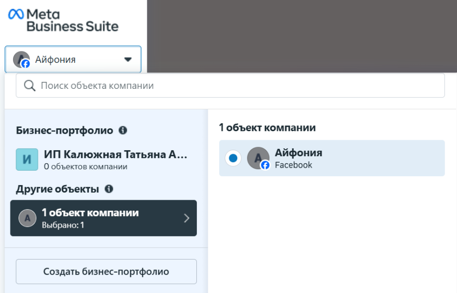 После этого бизнес-портфолио будет зарегистрировано.
