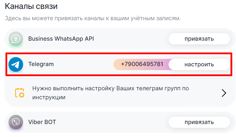 Подключение канала Telegram Personal