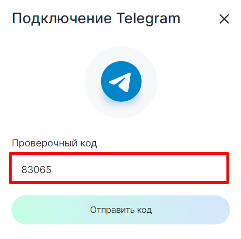 4. Введите проверочный код, который придет в Telegram.