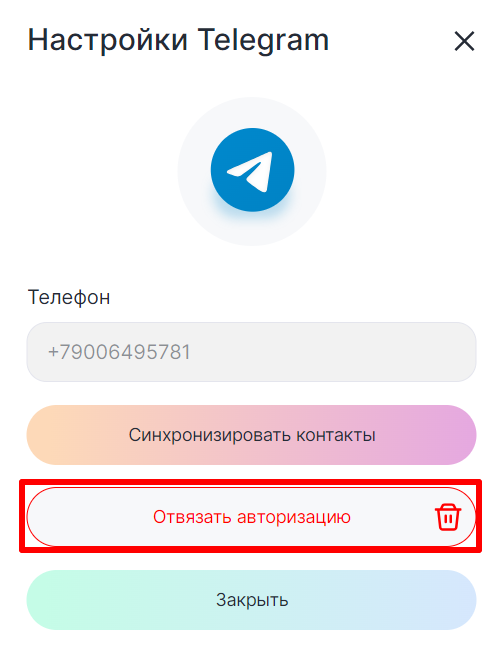 Отвязать линию можно в настройках телеграм-аккаунта: