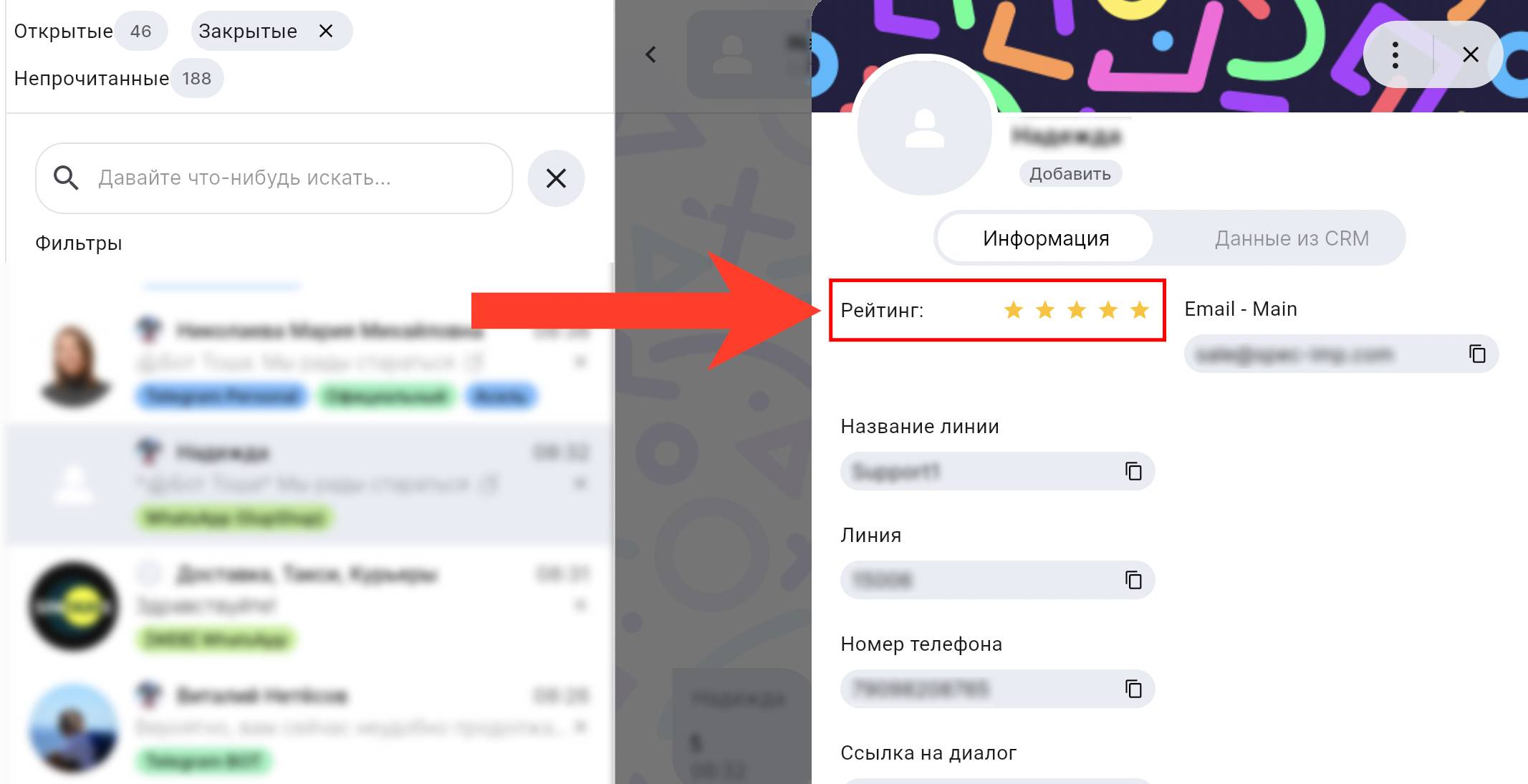 Получайте и просматривайте обратную связь по клиенту прямо из диалога: