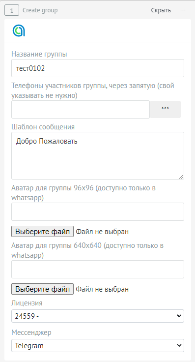 - Введите телефоны участников группы, чтобы сразу добавить их.