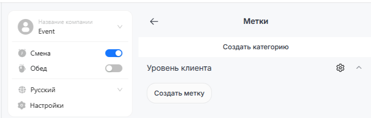 2. Нажмите на поле «Создать категорию». Категория содержит в себе метки, сгруппированные по какому-то либо признаку, и предназначены для удобной организации представления и поиска меток.