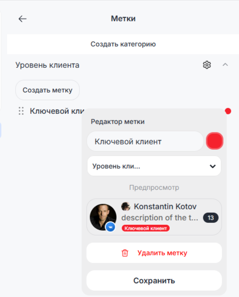Метки в чатах