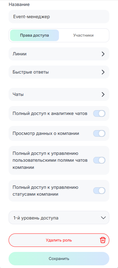 Пользователь может предоставить это право сотрудникам с ролью, в которой включен элемент настройки «Полный доступ к управлению статусами компании».