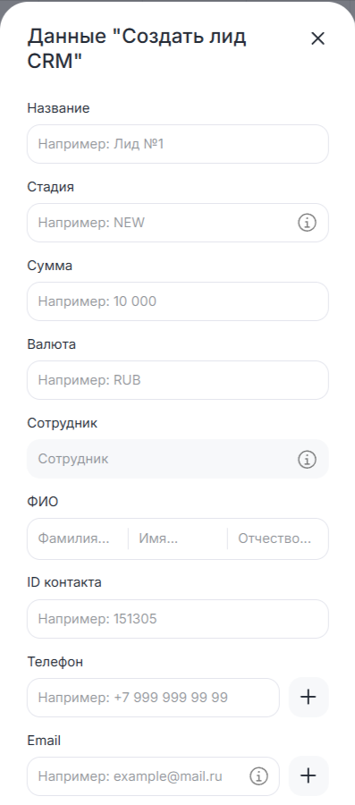 Теперь когда сценарий дойдет до этого блока, в CRM-системе будет создан лид.