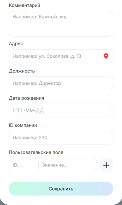 - ФИО — введите ФИО контакта из CRM-системы;