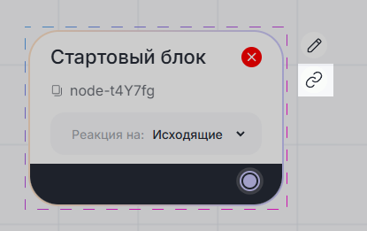 1. Перейдите в Редактор сценариев и добавьте «Стартовый блок» в рабочую область, нажмите на блок и кликните на опцию ссылки.
