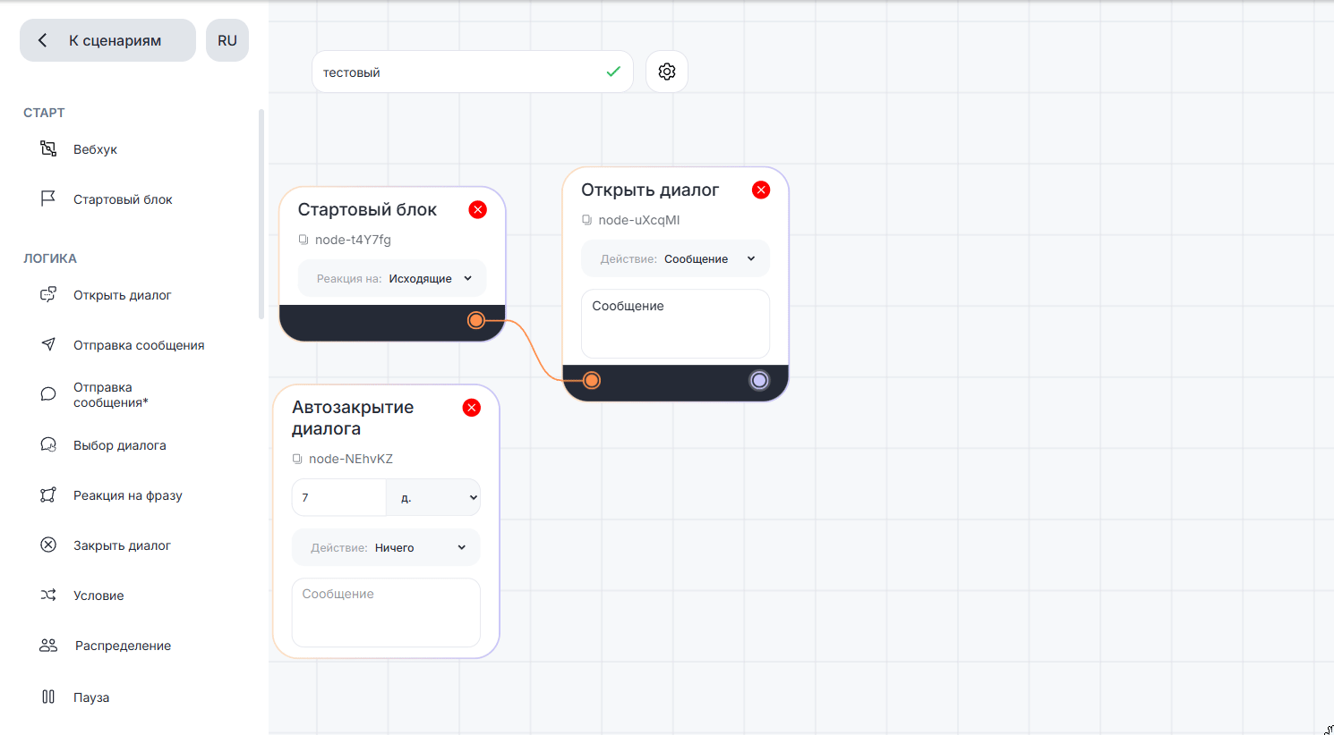 С его помощью можно настроить разные варианты развития диалога. Например: