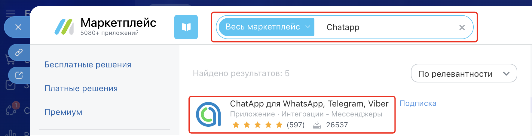 Если Маркетплейс не активирован, система предложит включить, после чего вы сможете продолжить установку ChatApp.