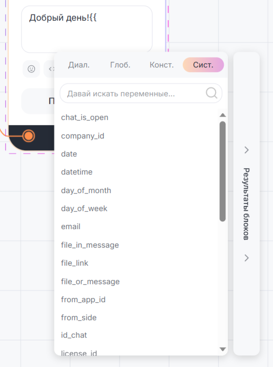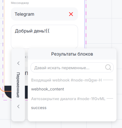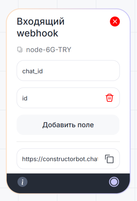 | Важно: в блок «Входящий webhook» нельзя добавлять системные переменные. | |