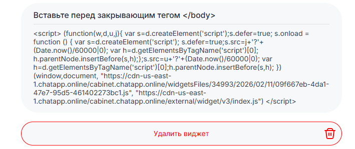 - Скопируйте скрипт на странице создания виджета.