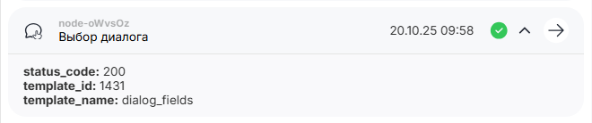 Если чат найден, то дальнейшие блоки будут выполняться в найденном диалоге. Лог выполнения блока «Выбор диалога» отображается в чате, в котором был выполнен.