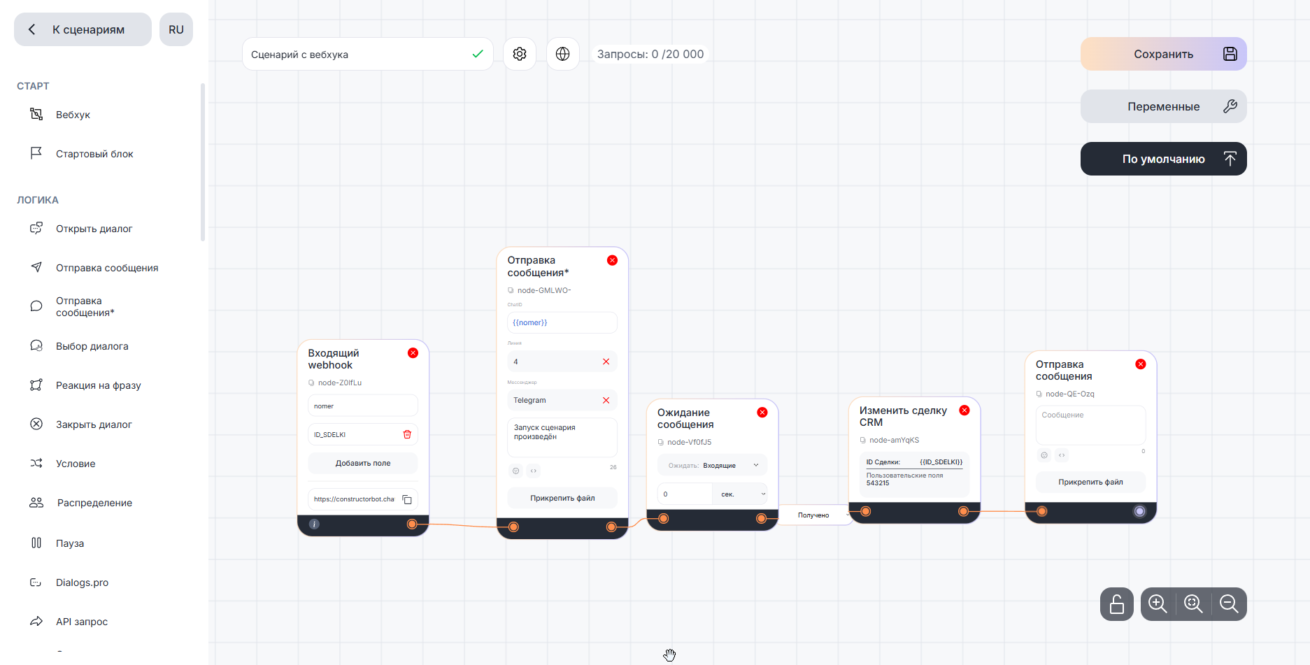 в поле «ChatID» — переменную {{nomer}};