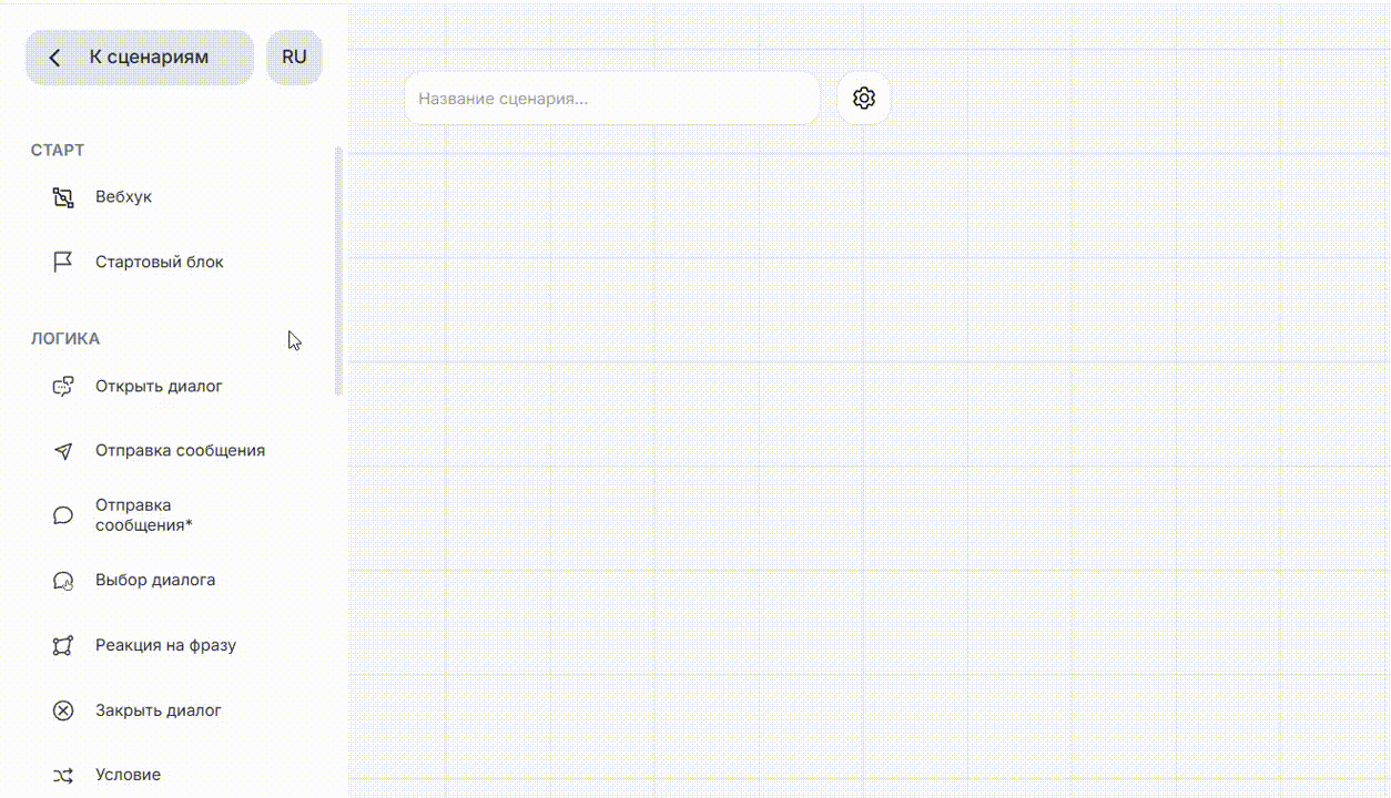 Шаг 1. Настроить бота в редакторе сценариев ChatApp
