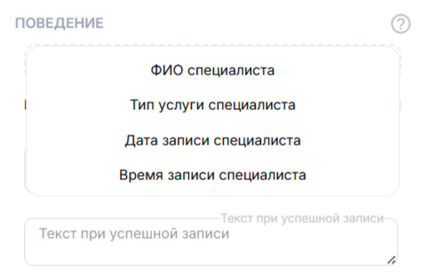 - В окне «Текст при успешной записи», напишите, что клиент успешно записался на прием и как клиент может начать новую запись. Например: «Спасибо, вы успешно записались! Чтобы сделать еще одну запись, напишите Старт»;
