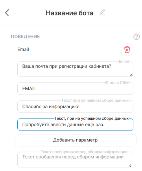 5. Нажмите на «Добавить параметр» для настройки поведения бота.